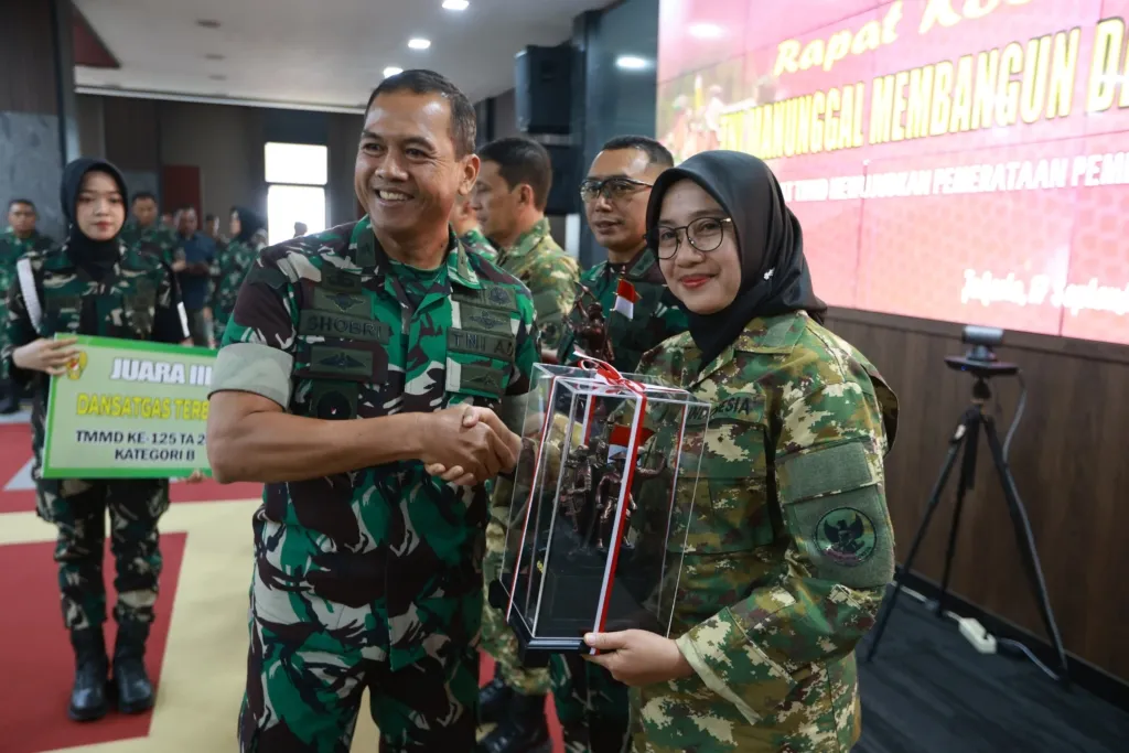 SUARA BANYUWANGI – Program TNI Manunggal Membangun Desa (TMMD) ke-125 tahun 2025 yang digelar di Banyuwangi, memborong tiga penghargaan dari Mabes TNI Angkatan Darat.